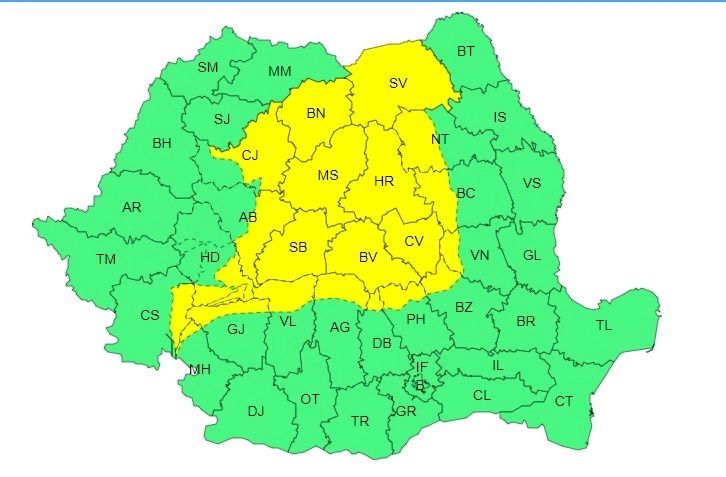 Specialiștii Administrației Naționale de Meteorologie au emis mai multe avertizări meteo cod galben de vreme rea în România. Prima avertizare meteo ANM cod galben este valabilă astăzi, între orele 10:00 și 18:00.