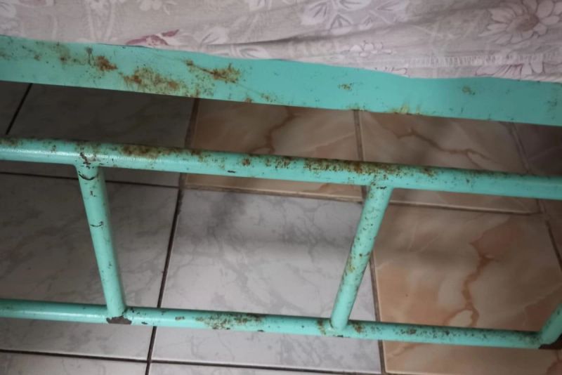 - condiții insalubre în spațiile de cazare a beneficiarilor: paturi metalice ruginite, lipsa huselor de protecție pentru perne și saltele , pereți exfoliați cu urme masive de igrasie, saltele și perne pătate, așternuturi neigienizate, calorifere ruginite, cu resturi de ambalaje și praf masiv, lipsa plăcilor de faianță pe holuri, paviment neigienizat, tavanul cu exfolieri și urme de infiltrații .