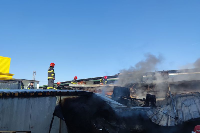 ”În urma recunoașterii la fața locului, s-a constatat că ard construcții din panouri de tip "sandwich" unde își desfășurau activitatea câteva societăți comerciale, pe o suprafață totală de aproximativ 500 mp. Pe timpul incendiului nu au fost identificate victime surprinse de acesta.