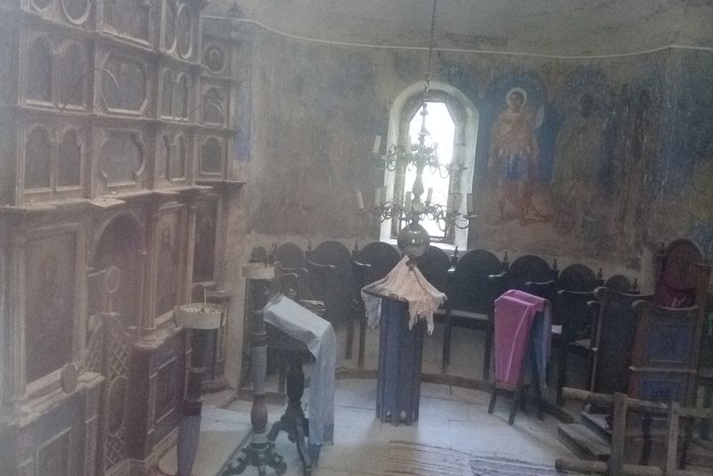 Alergi, te impiedici, dar iti doresti cu disperare sa gasesti o fereastra care sa iti arate ca te inseli. O gasesti. Te prinzi, brutal, cu mainile de gratii, pui mana streasina sa poti vedea, iar imaginea este dezolanta. Praf, mult, troneaza peste lucruri sfinte, catapeteasma pare gri, lucruri abandonate parca in graba. Te scurgi, cobori si cauti, cauti o dovada ca inca mai exista cineva caruia ii pasa de acel loc.