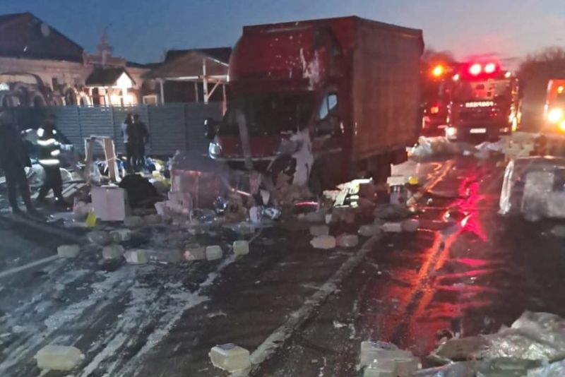ACCIDENT GRAV PE DN1B, ÎN JUDEȚUL BUZĂU. UN TIR S-A RĂSTURNAT ȘI A INTRAT ÎNTR-UN RESTAURANT