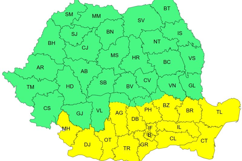 De asemenea, este cod galben, în intervalul 6 decembrie, ora 08 – 6 decembrie, ora 20, în Dobrogea, sudul, centrul şi estul Munteniei