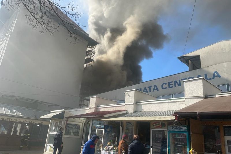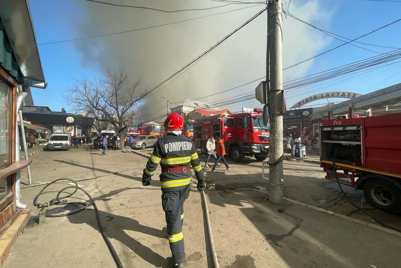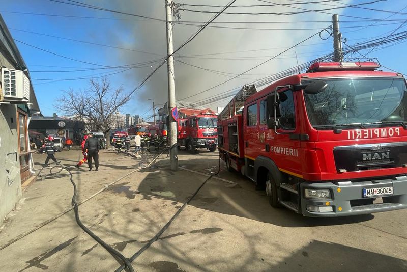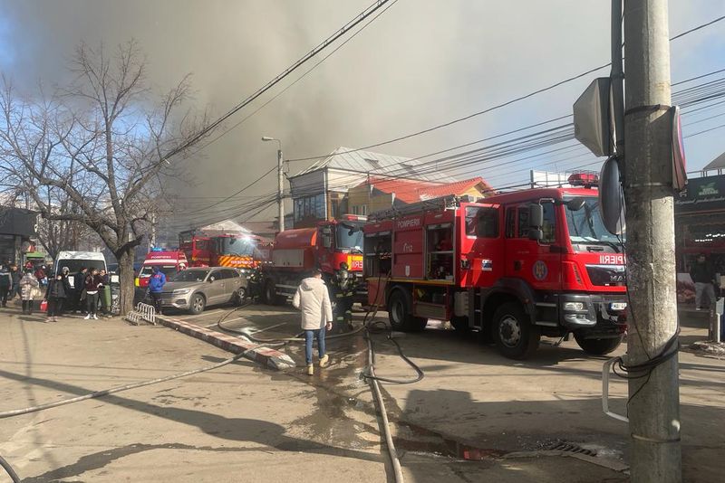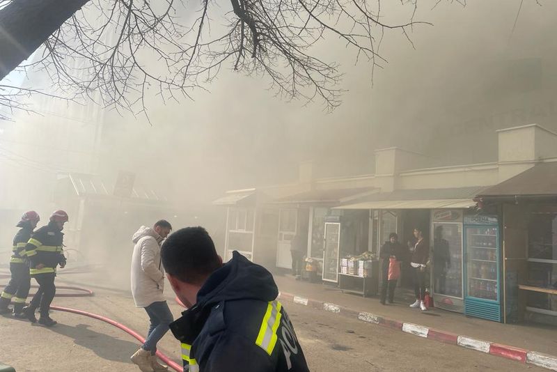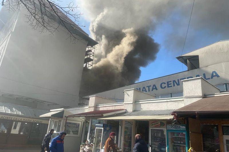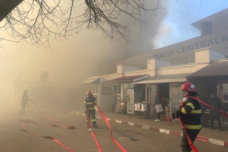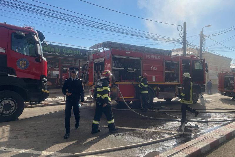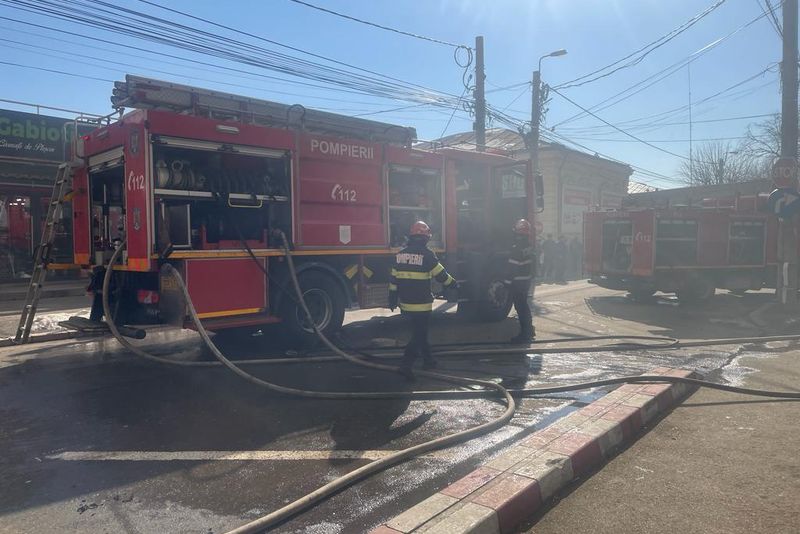 Foto+video: Incendiu în Piața Centrală din Buzău