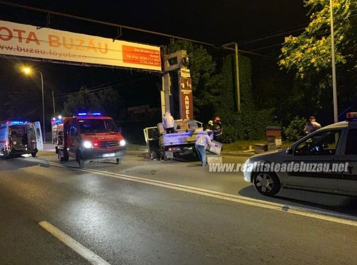 Mașină încărcată cu stupi, răsturnată pe Șoseaua Brăilei