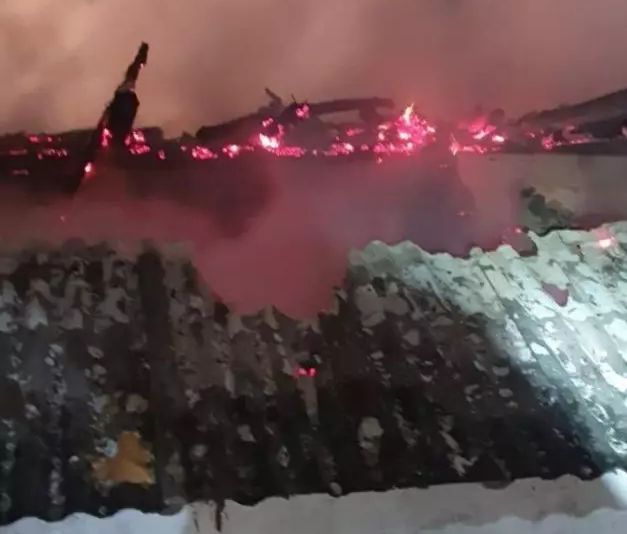 In imagini se poate vedea ca salonul in care a izbucnit incendiul a fost facut scrum, iar jarul inca mocneste pe jos.