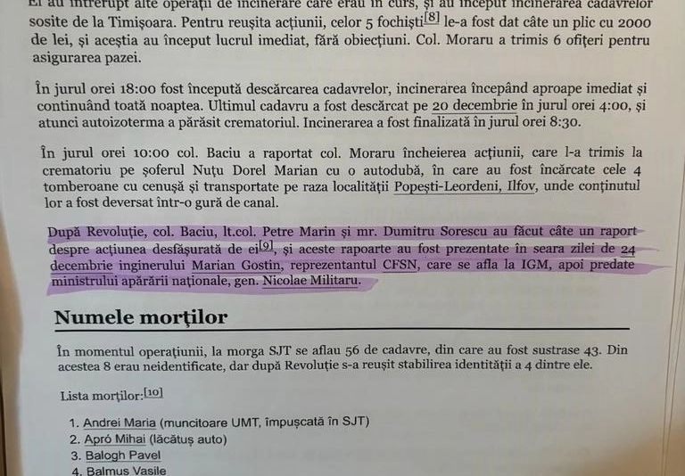 Cert este că „revoluționarul” Gostin Marin a fost transformat de Ion Iliescu în cadru MAI, ca răsplată a actelor sale din timpul Revoluției. Dacă a jucat un rol în acoperirea masacrului de la Timișoara, acesta nu putea fi decât în favoarea unor criminali, fie din Armată, fie din trupele de Securitate. Un alt detaliu surprins de presă este că Gostin Marin a beneficiat ulterior, când s-a specializat în diverse afaceri cu primăriile, de sprijinul unor foști ofițeri de Sucuritate. Cum este cazul generalului SRI Anghel Ion, al cărui nume îl găsim pe o listă publicată de paulgoma.free.fr: