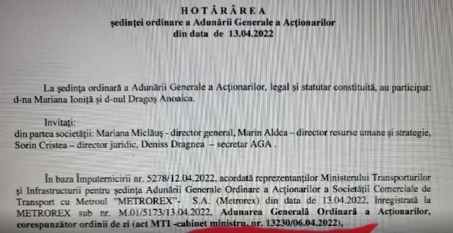 „Se vad foarte clar reprezentantii AGA, cu mandat. Împuternicirea data reprezentantului ministerului, e din martie 2021, avizata de secretar general si sus in dreapta aprobat de ministru, la acel moment era dl Drula. Acest mandat e semnat de ministru, sa fie foarte clar.