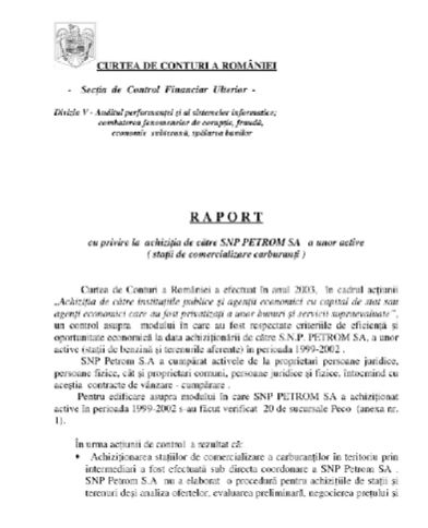 Compania Petrom a cheltuit sute de miliarde de lei pentru benzinării și terenuri supraevaluate! O spune un raport al curții de conturi întocmit înainte de privarizare. În plus, în urma unor controale realizate în anul 2003, la circa 20 de statii Peco, s-a constatat că SNP Petrom SA nu a elaborat o procedură pentru achizițiile de stații și terenuri. Astfel, mai mult de 200 miliarde de lei au fost gestionate după bunul plac al conducerii societății din acea perioadă.