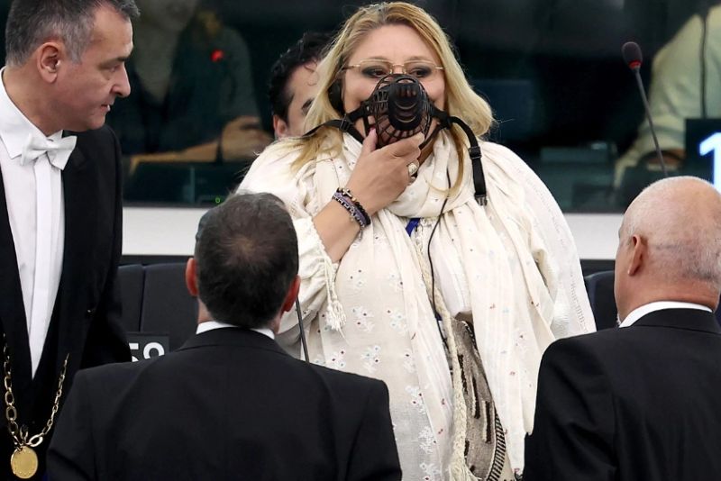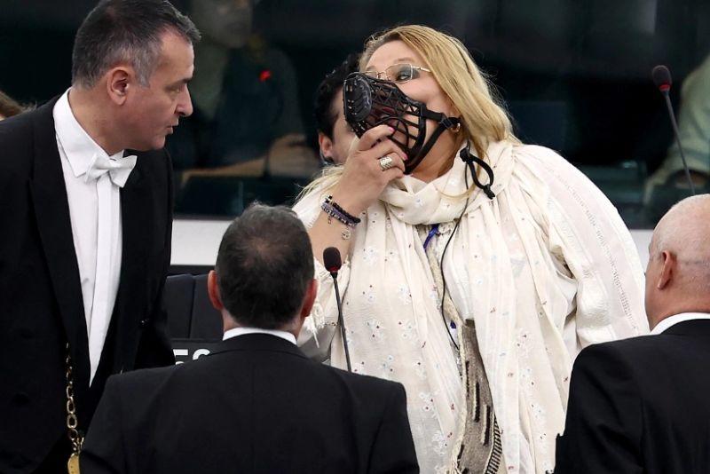 Diana Șoșoacă și-a pus botniță și a urlat, în ședința din Parlamentului European. Șoșoacă a venit și cu sacii în care au fost îngropați morții de Covid. A fost scoasă afară din plen, de forțele de ordine. Totul s-a întâmplat în timpul dezbaterii privind alegerea Ursulei von der Leyen.